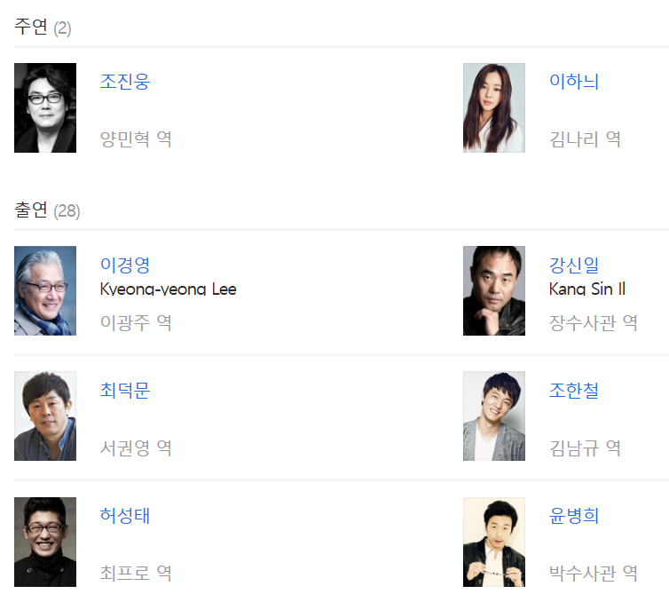 배우: 조진웅, 이하늬