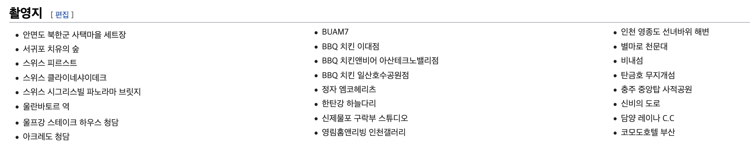 아름다운 촬영지