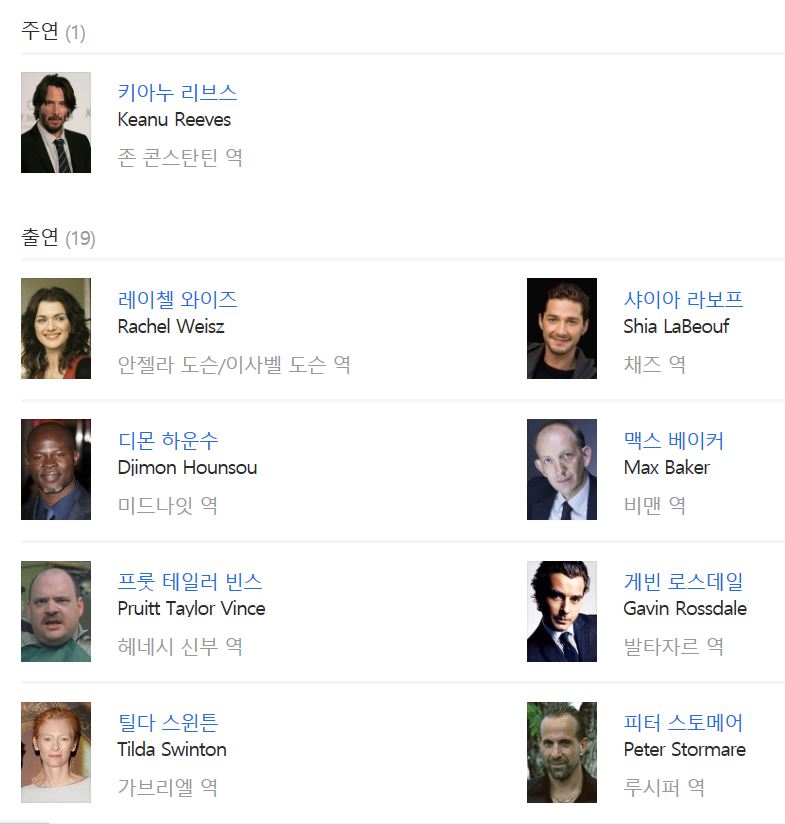 <매트릭스>로 대박이 난 이후의 작품치고는 상당히 조용히 넘어간 듯 하지만 개인적으로 나에겐 <콘스탄틴>도 키아누 형님의 대표작 중 하나이다. <매트릭스>, <존 윅>, <스피드>, 그리고 그다음이 <콘스탄틴>이 아닐까 싶다. 그 정도로 키아누 리브스는 존 콘스탄틴 역할이 잘 어울렸고, 그가 아니면 이 배우의 매력을 이 정도로 살릴만한 배우가 또 누가 있을까 싶을 정도로 찰떡이다. 창백한 얼굴에 너무나 잘 어울리는 블랙 슈트와 하얀 셔츠. 존 윅이나 네오만큼 존 콘스탄틴도 키아누 형님의 대표 캐릭터라 부를 만하다.